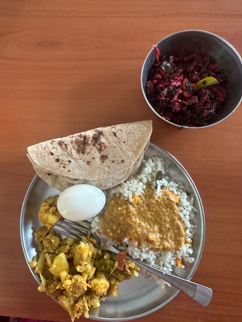 For lunch today we ate rice, a chickpea curry, an aloo curry/another form of potato curry and papad.